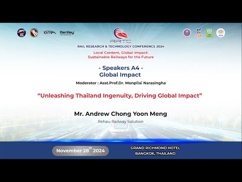 Speakers A4 - Global Impact Moderator : Asst.Prof.Dr. Monpilai Narasingha "Global Impact: Railway Sustainability for the Future Mr. Tomasz Mazur Siemens Mobility Limited Thailand
